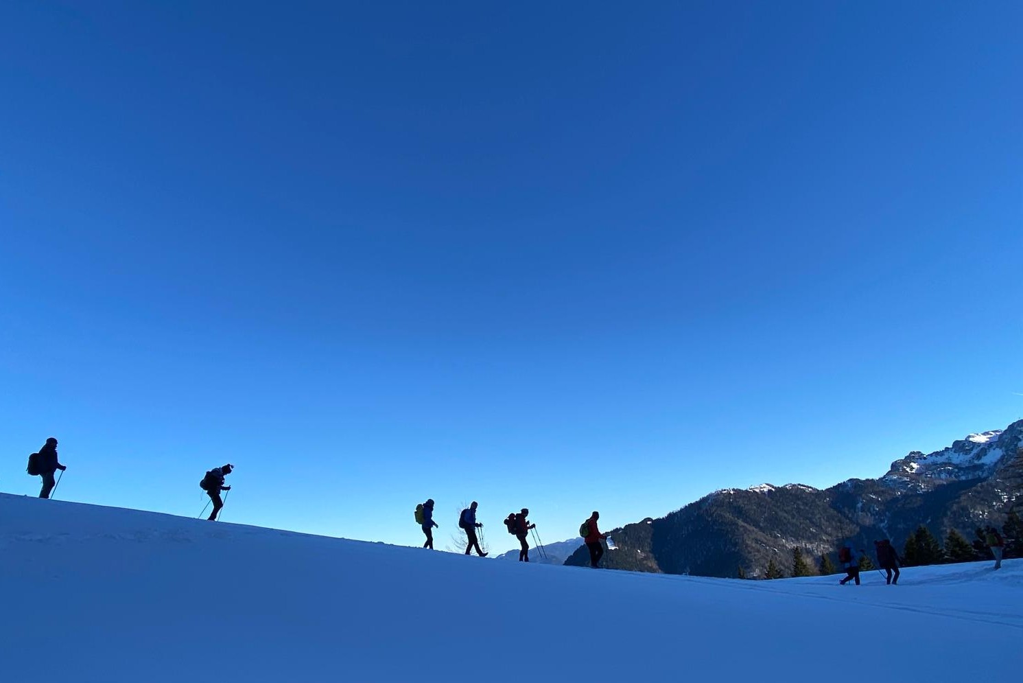 Percorsi invernali, che si sviluppano su manto nevoso, mediante utilizzo di racchette da neve e bastoncini. Adatto a principianti e non. Vengono abbinati a soste gastronomiche.