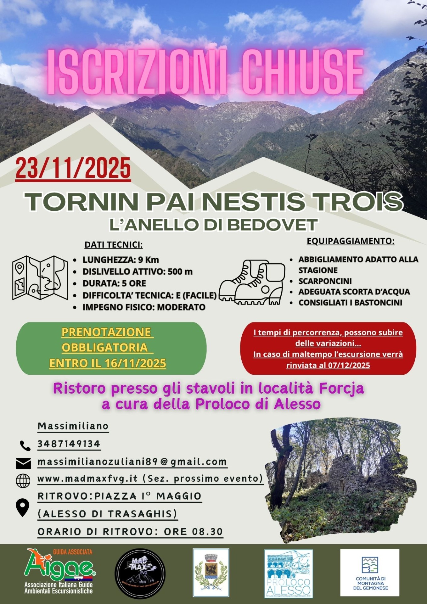 - Luogo di Ritrovo: Piazza I° Maggio (Alesso di Trasaghis)