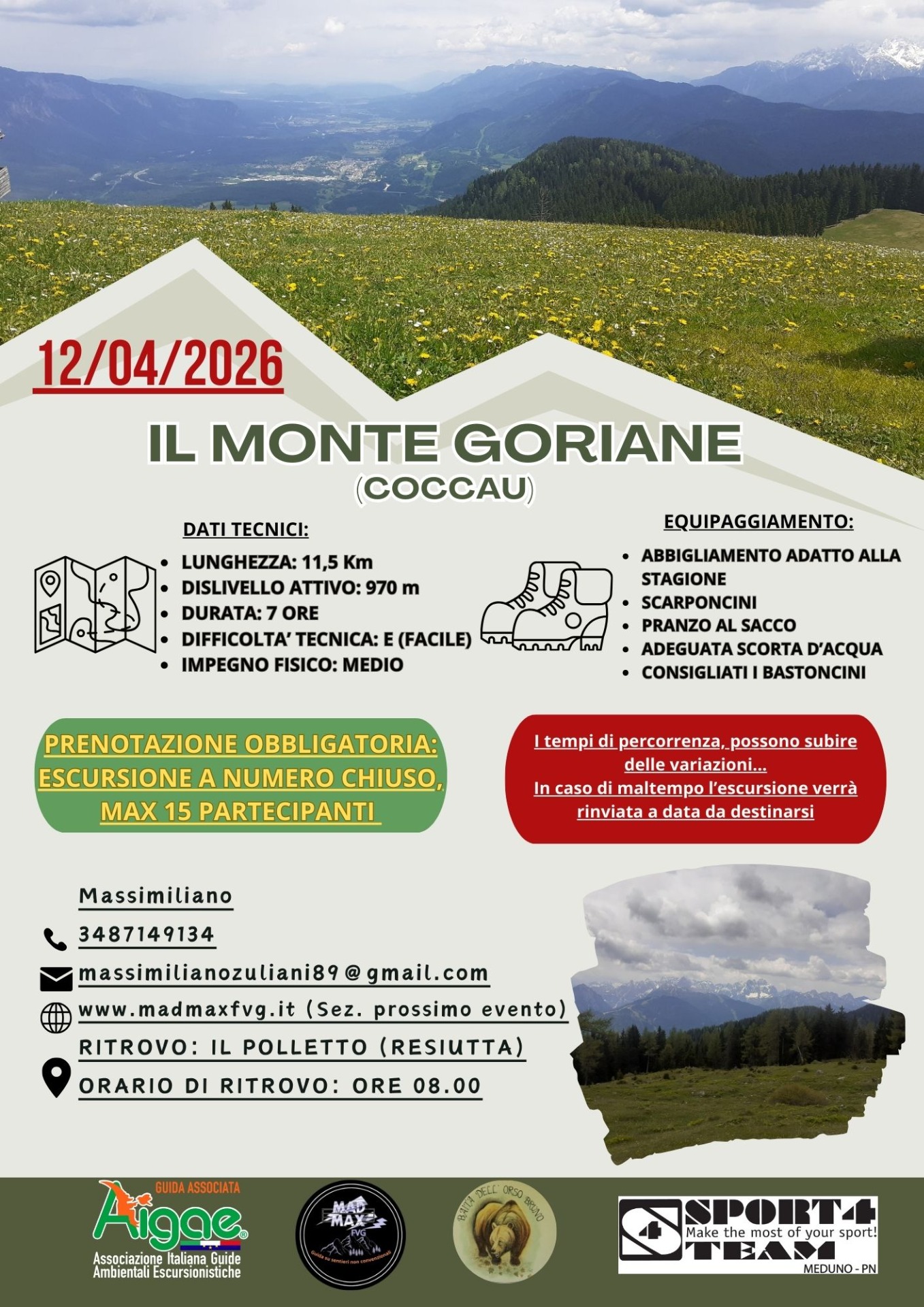 - Luogo di Ritrovo: Centro Polifunzionale di Monte Prat (Monte Prat di Forgaria nel Friuli)