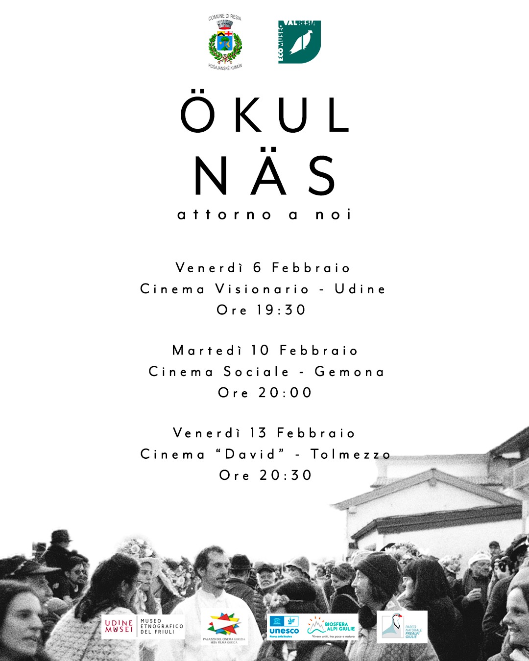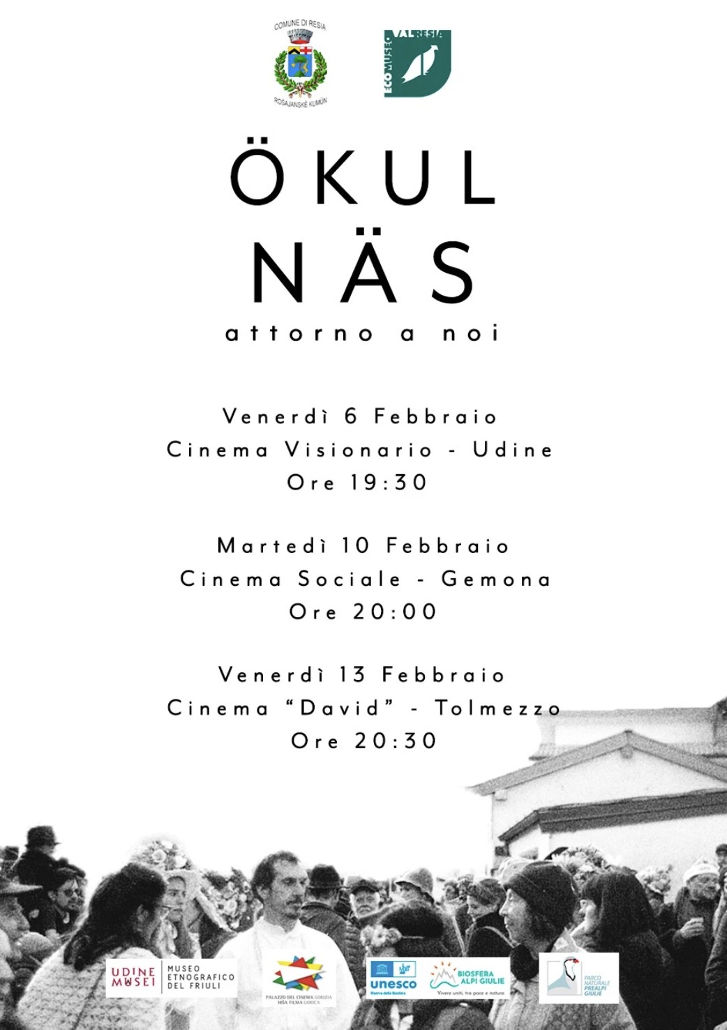 Le prime visioni nei cinema del Friuli Venezia GiuliaIl docu-film "Ökul Näs" diretto da Enrico Micelli inizia il suo percorso di prime visioni in alcuni importanti cinema della regione, compresi quelli presenti nelle aree montane, portando sul grande schermo lo sguardo autentico di una valle di confine.""Ökul Näs"" significa attorno a noi: è un racconto corale che nasce dalla Val Resia, dalle sue persone, dalla sua lingua, dai suoi paesaggi e dalla memoria che ancora oggi vive nei gesti quotidiani e nelle tradizioni.Le proiezioni arrivano in un momento particolarmente significativo, alla vigilia dei festeggiamenti del Carnevale resiano, una delle espressioni culturali più vive e identitarie della valle, e diventano un'occasione per avvicinarsi a una comunità che ha saputo custodire la propria autenticità nel tempo.La Val Resia, sede del Parco Naturale delle Prealpi Giulie e parte della Riserva della Biosfera MAB UNESCO Alpi Giulie, è un territorio dove natura e cultura si intrecciano in modo profondo: questo film è un invito ad ascoltare, osservare e conoscere una valle che non si mostra, ma si racconta."Ökul Näs" è un progetto finanziato dall'Ecomuseo Val Resia.