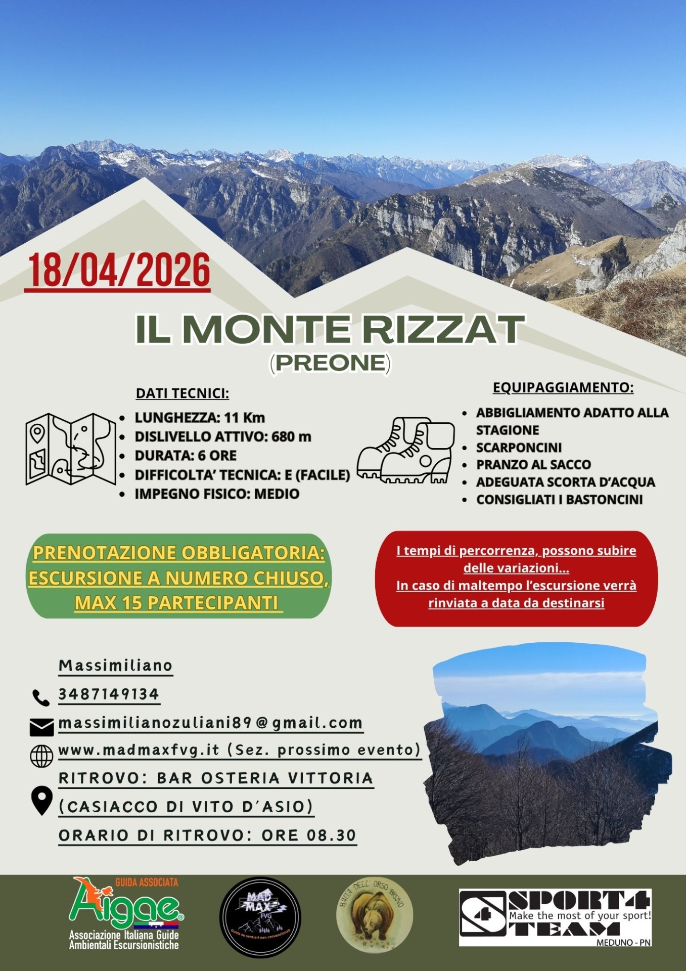 - Orario di Ritrovo: 08:30